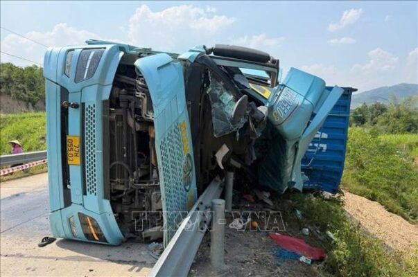 Hiện trường vụ tai nạn. Ảnh: TTXVN phát Cụ thể, vào lúc 11 giờ 40...