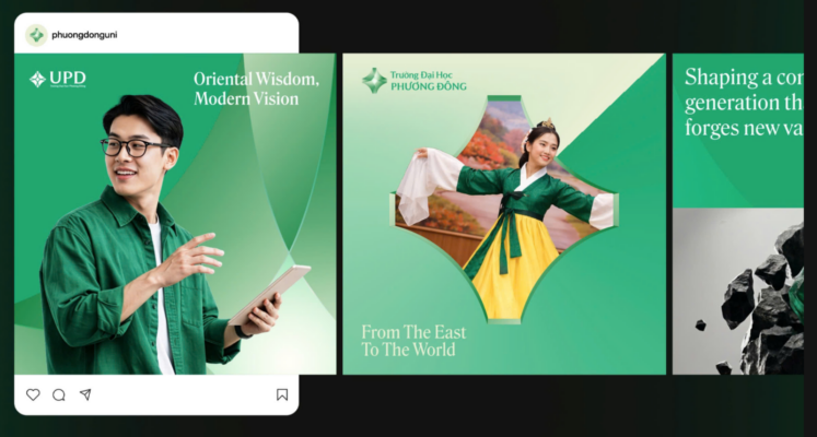 Hệ thống các phiên bản logo của UPD. Ảnh: NT Trường Đại học Phương Đông...