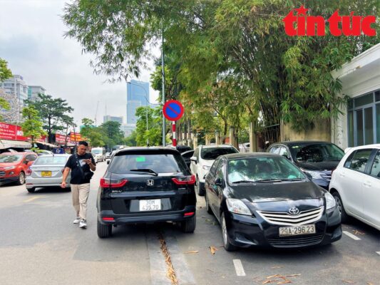 Ô tô đỗ tràn lan tại khu đô thị mới Cầu Giấy bất chấp biển cấm