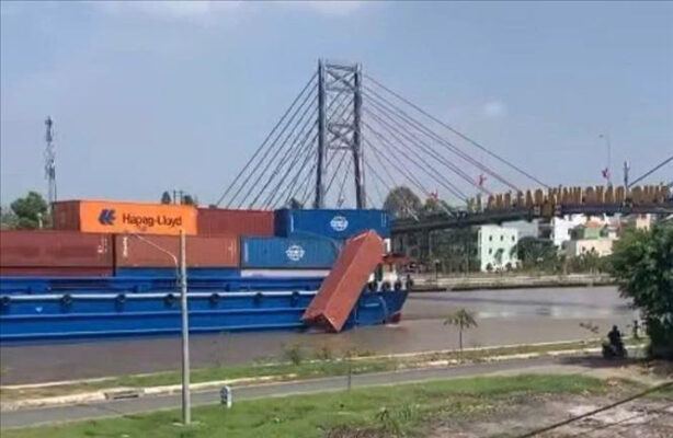 Xử lý phương tiện làm rơi container trên tuyến kênh Chợ Gạo